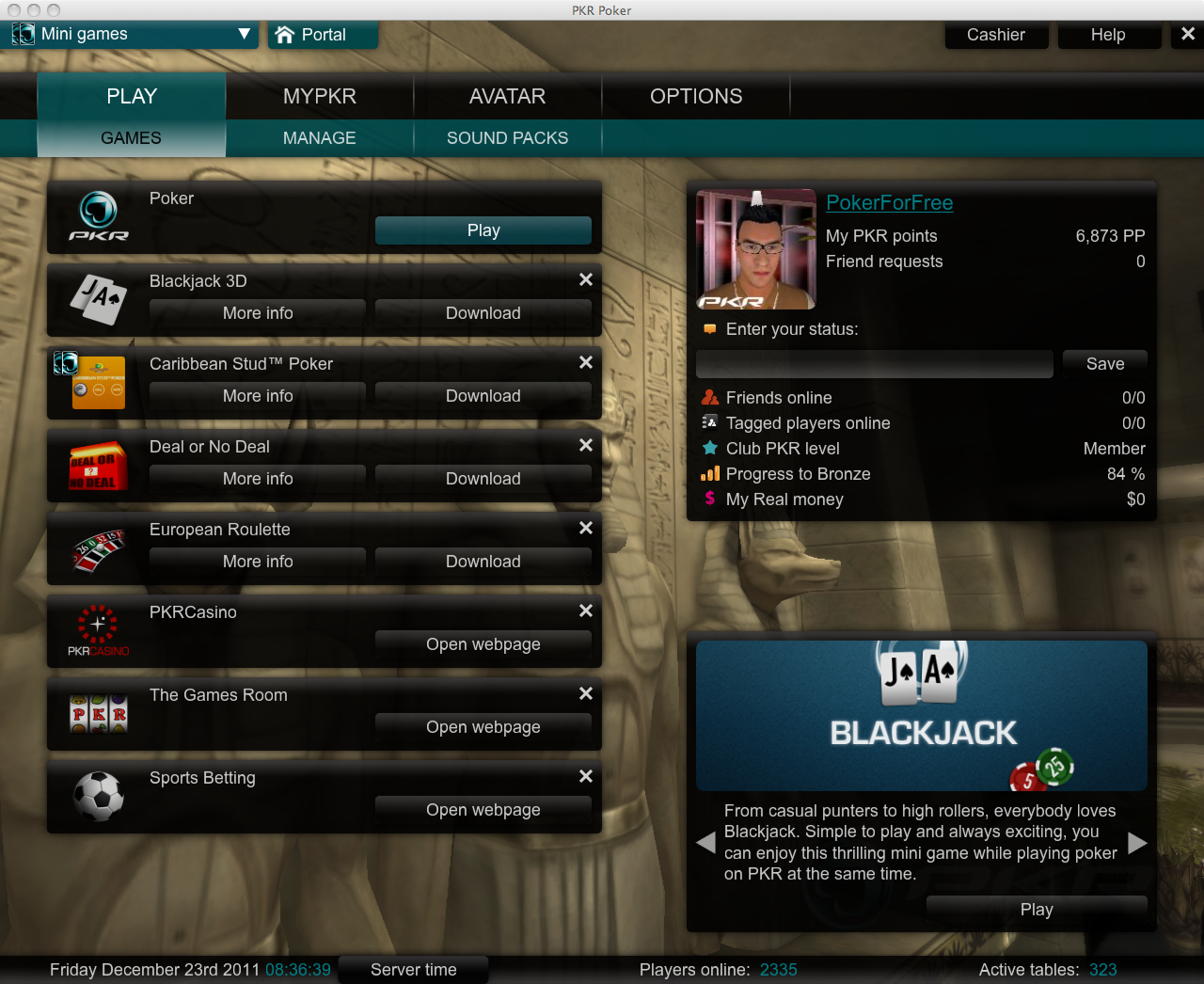 the PKR site taps into. If you like the glamorous hotel or casino setting for your poker games, this is an option.